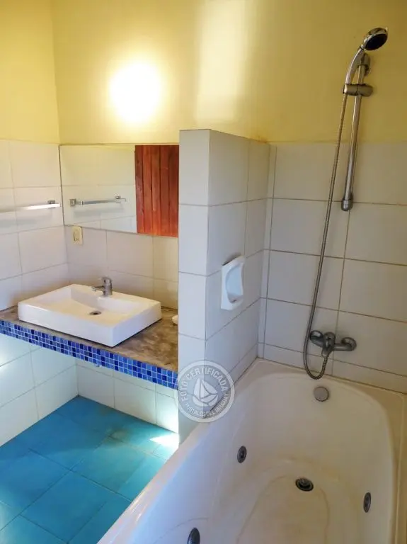 2 baños completos, el de planta alta con hidromasaje. Parrillero y horno de pan techados, terraza (dormitorio principal), lavarropa, heladera con freezer. TV Cable y DVD. Ducha exterior y lavavajillas.